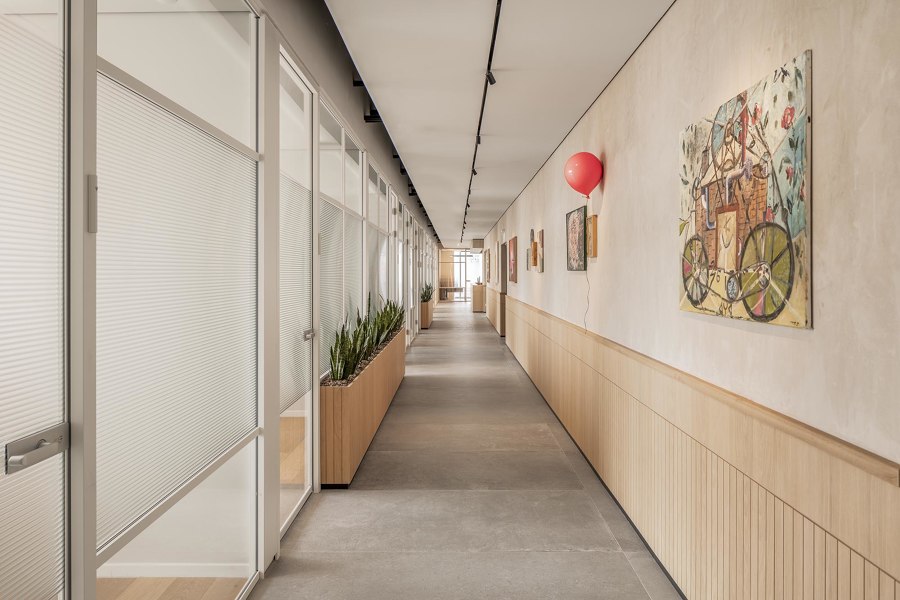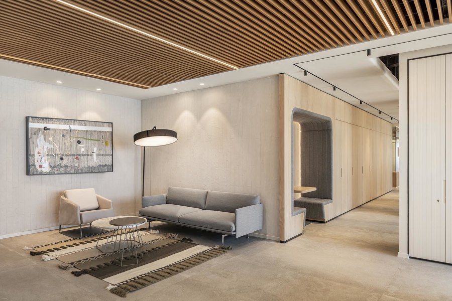 Bằng cách sử dụng các đường nét sạch và bảng màu trầm tính, chúng tôi đã tạo ra một không gian một mặt đại diện, trang nghiêm và truyền tải sức mạnh và uy tín, mặt khác lại hài hòa, khiêm tốn, ấm cúng, thân mật và mang cảm giác như ở nhà.
